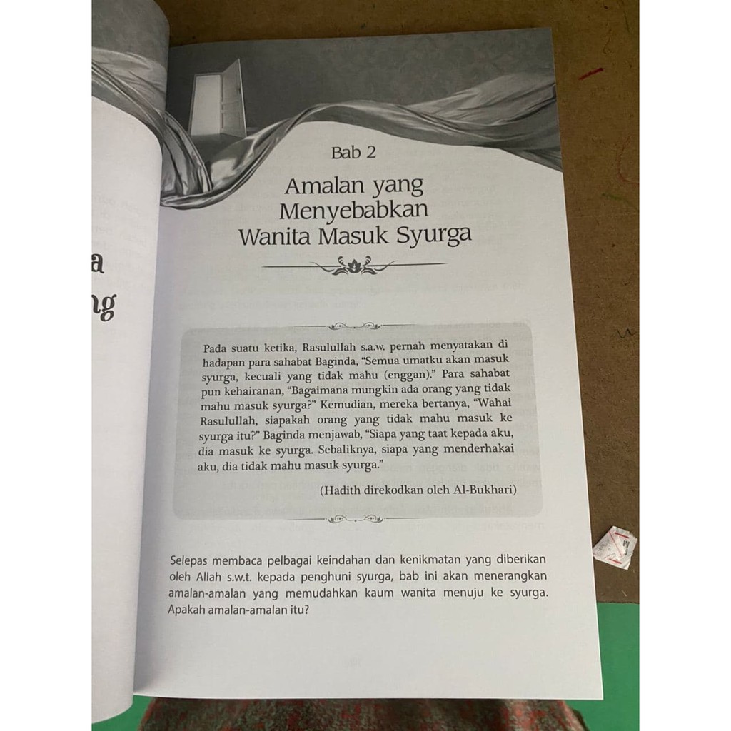 Jangan membiarkan hati larut dalam kesedihan; Jalan ke syurga dibentangi dengan perkara yang tidak disukai manakala jalan ke neraka dibentangi dengan syahwat. 4 amalan wanita mudah masuk syurga. Majulah kalian menuju surga yang luasnya seluas langit dan bumi! di antara amalan terbesar yang mengantarkan seseorang kepada negeri kedamaian adalah menuntut ilmu yang bermanfaat, yaitu orang yang berbakti kepada kedua orang tuanya, sangat diharapkan untuk masuk ke dalam surga. Ikhlas dalam segala amal perbuatan;